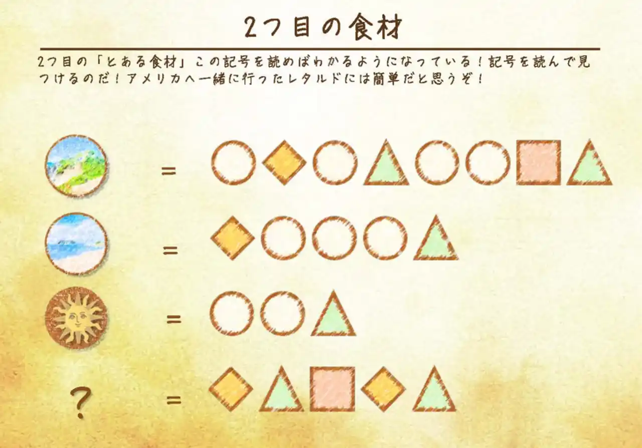 そこで参加者は、個性豊かなトラベリン家の人々と協力しながら、この暗号の解読に挑みます。果たしてあなたはすべての謎を解き明かし、幻のレシピである「ハンバーガー」を完成させることができるのか・・・。 |