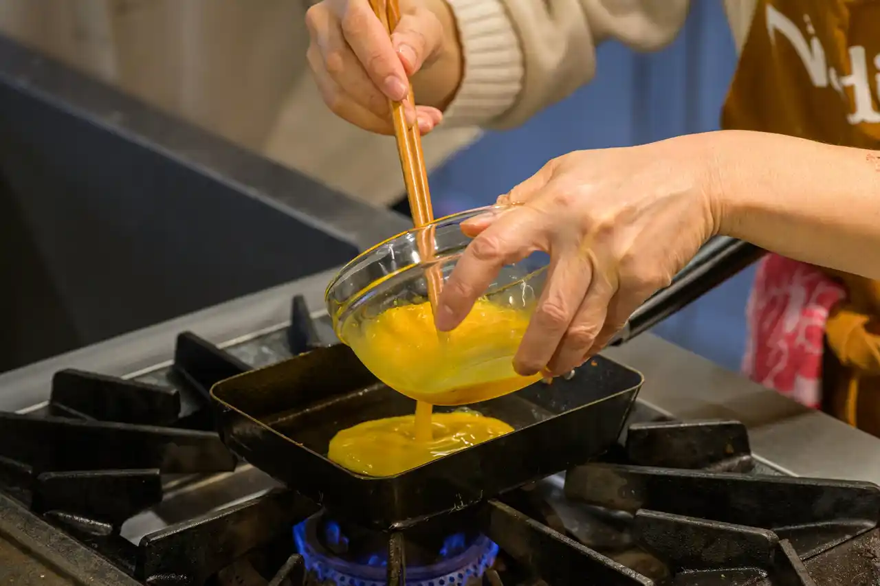 卵焼きも「液体塩こうじ」を使って作るのがおすすめ。卵に「液体塩こうじ」を加えると、麹に含まれる酵素の働きで黄身と白身がなじみやすくなり、色味がきれいなふっくらとした卵焼きに! 優しい塩味とうま味が加わることで、シンプルな味付けでも味が決まり、唐揚げ同様冷めても美味しさがキープできます。 |