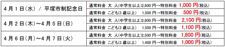 寒さが緩み、暖かさを感じられる季節になりました。そんな春のお出かけには室内外で様々な温泉が 楽しめるユネッサンがおすすめ!そこでユネッサンでは、平塚市民の皆さまのお出掛け意欲を後押ししたいと考え、4月1日(水)の平塚市制記念日に合わせて「勝手に平塚市民割!」を実施いたします。 |