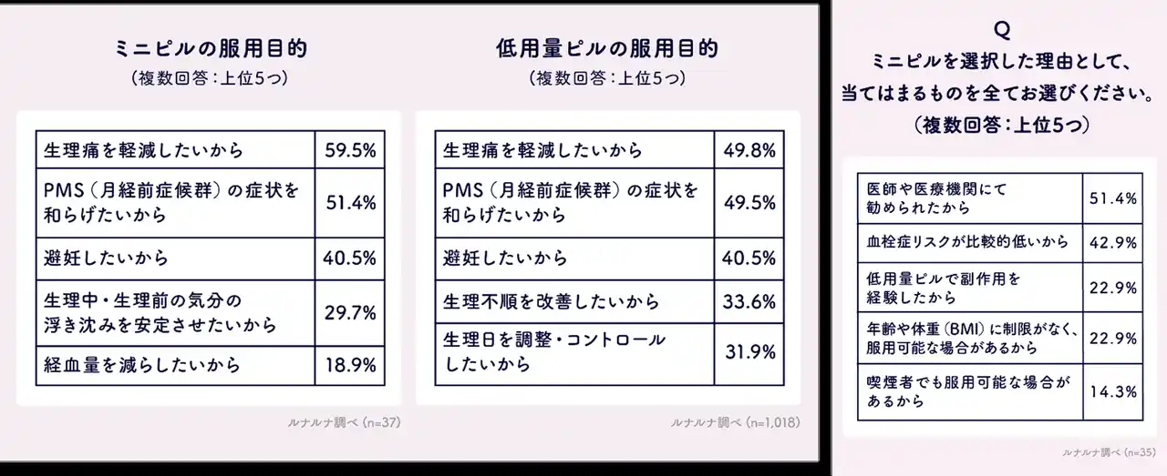 【ミニピル】の服用目的について、当てはまるものをお選びください。(複数選択)