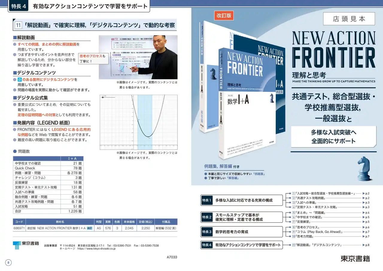 東京書籍株式会社は、2026年3月5日に書籍『改訂版 NEW ACTION FRONTIER 数学I+A』(ニューアクション編集委員会/著 東京書籍編集部/編)を発売いたしました。 |