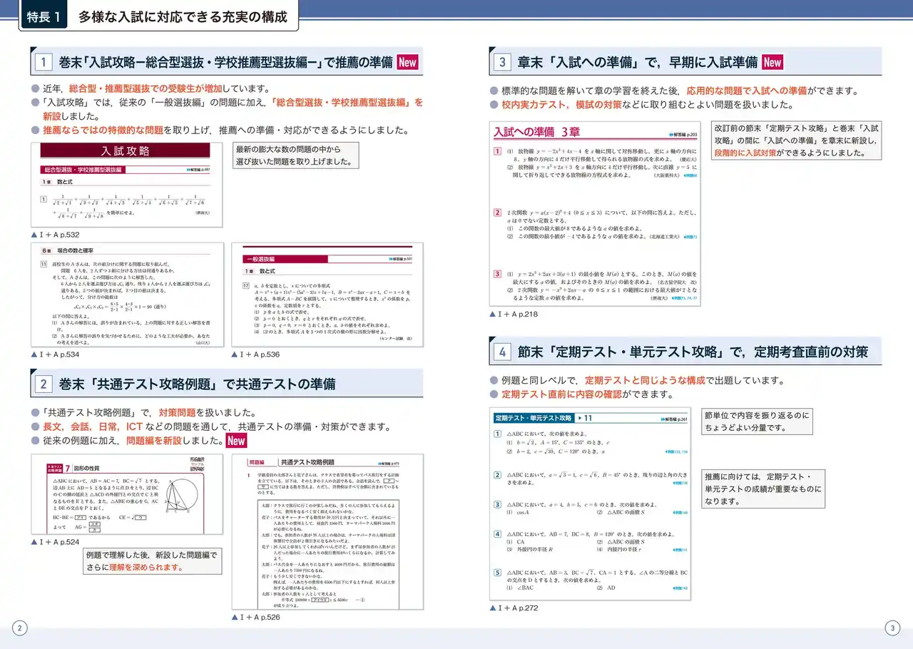 章末の【入試への準備】,巻末の【入試攻略】で、入試に対応できる応用力を伸ばすことができます。改訂版では,【総合型選抜・学校推薦型選抜編】を新設しました。 |