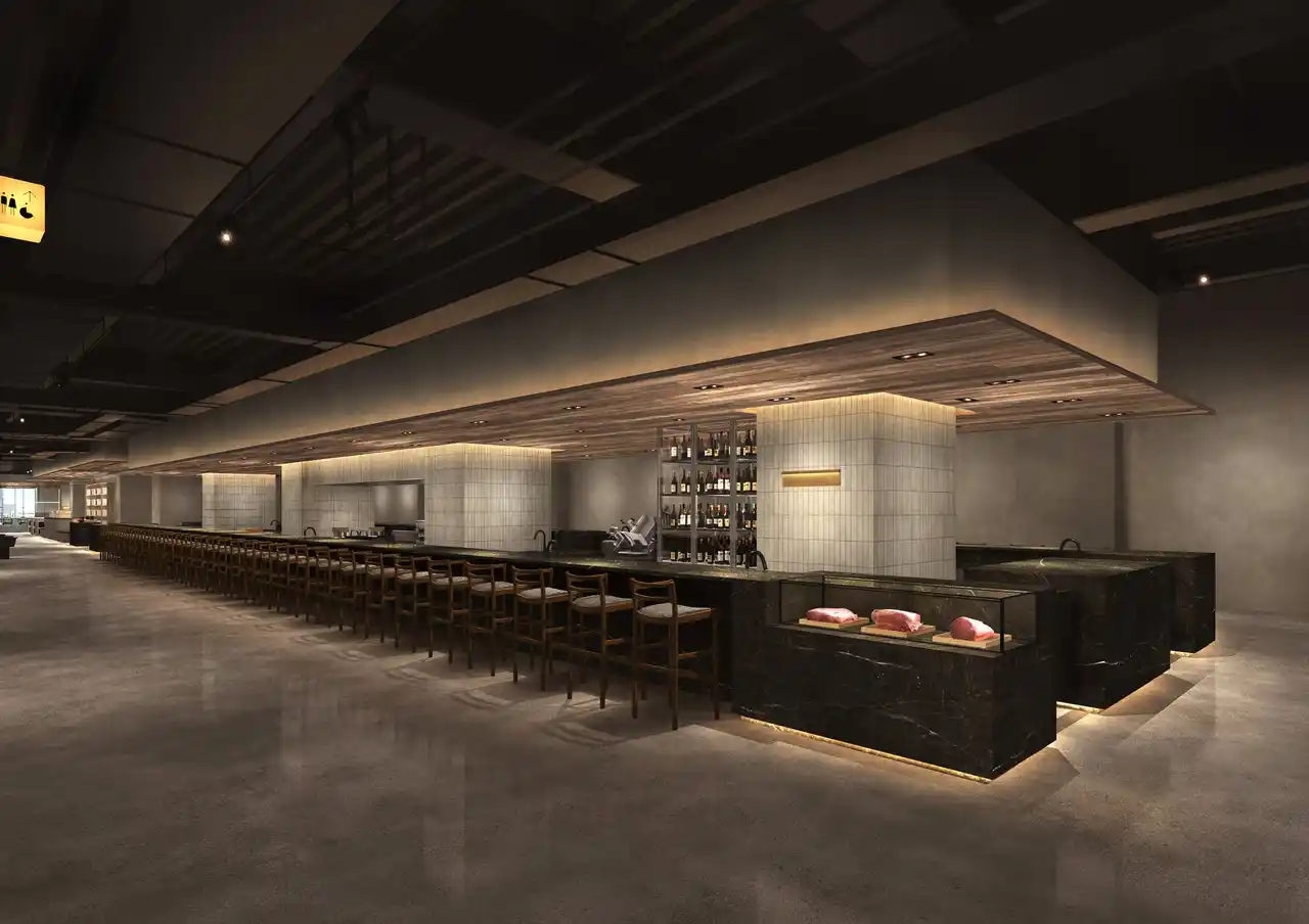 シックなトーンで統一された店舗には、大理石を用いた全周50m、60名様が一度に着席いただけるダイナミックなバーカウンターが登場。牛丼店のイメージを覆す洗練された空間で、極上の一杯を仕上げる料理人の様子も目の前でお楽しみいただけます。食欲をそそる芳醇な香りとクラフトマンシップ光る食の技。五感を通じた体験をお楽しみください。 |