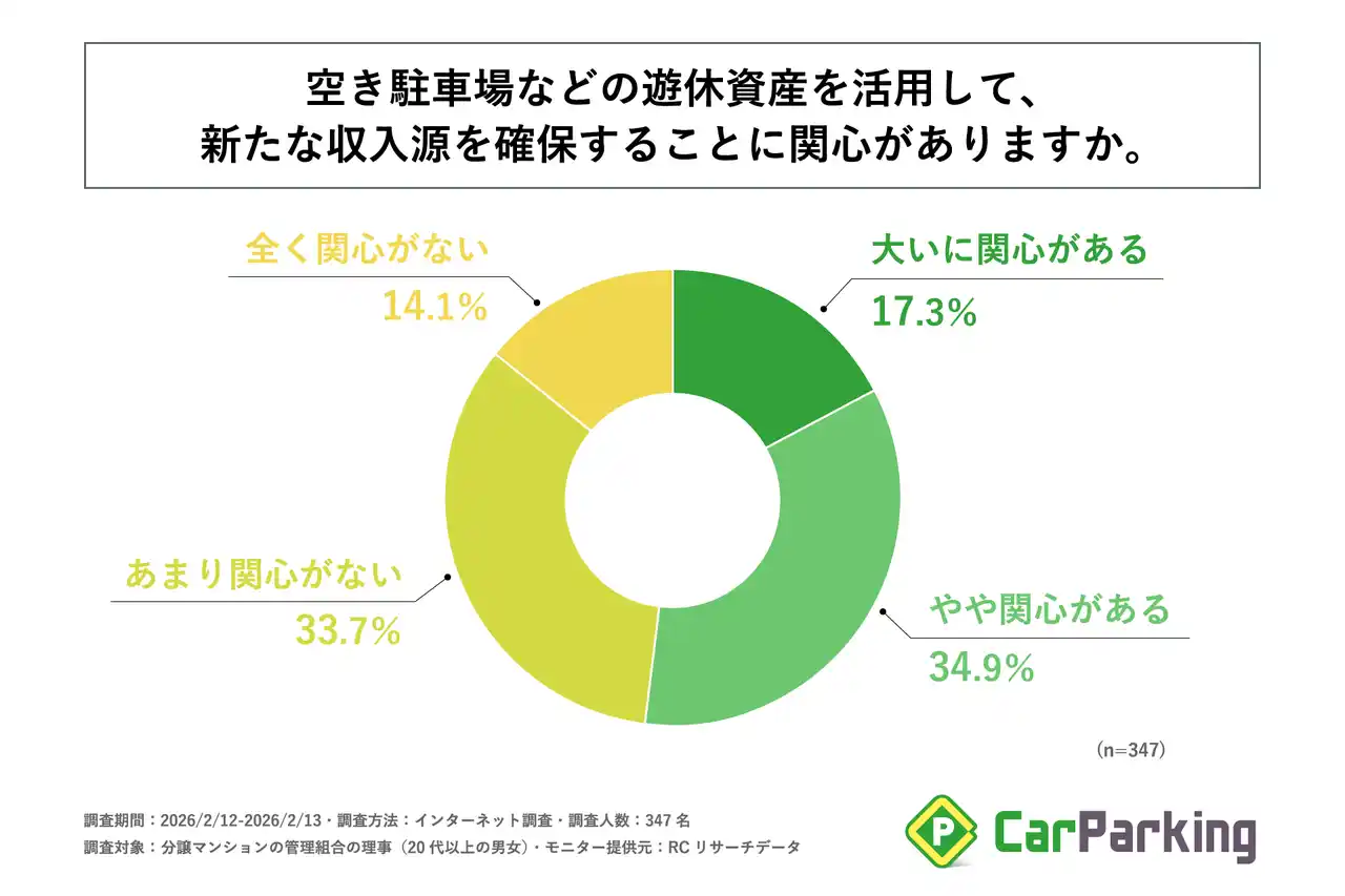 分譲マンション管理組合の理事の半数以上が、空き駐車場などの遊休資産を活用して新たな収入源を確保することに関心がある |