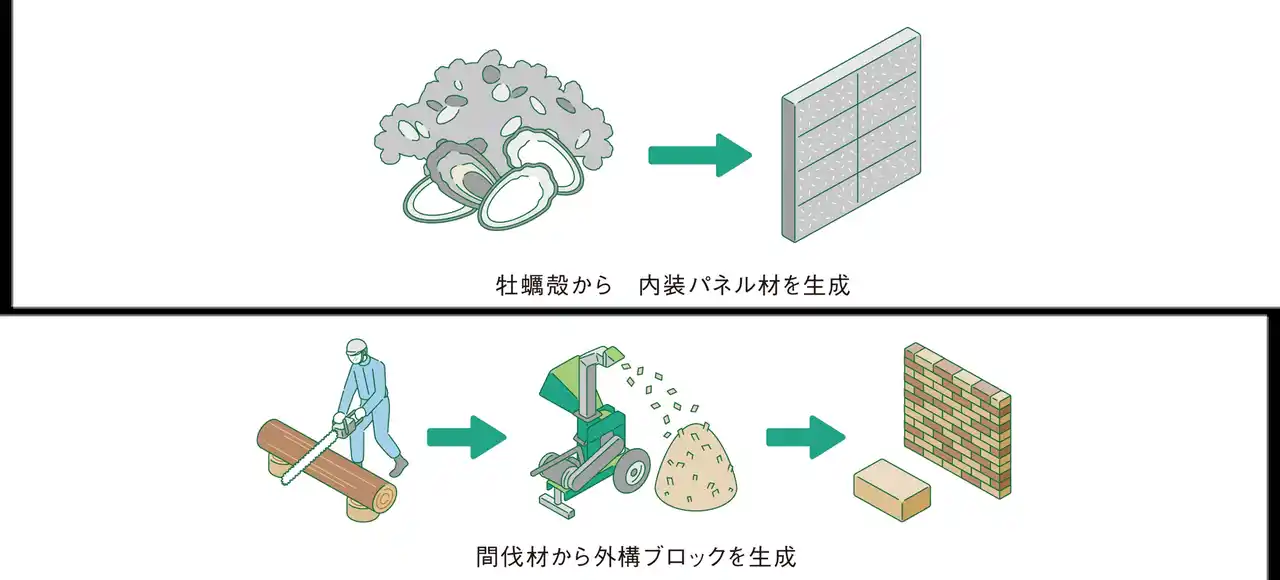 再利用が難しく社会問題になっている牡蛎の貝殻を施設内装材として利用し、地域の魅力を発信します。 |