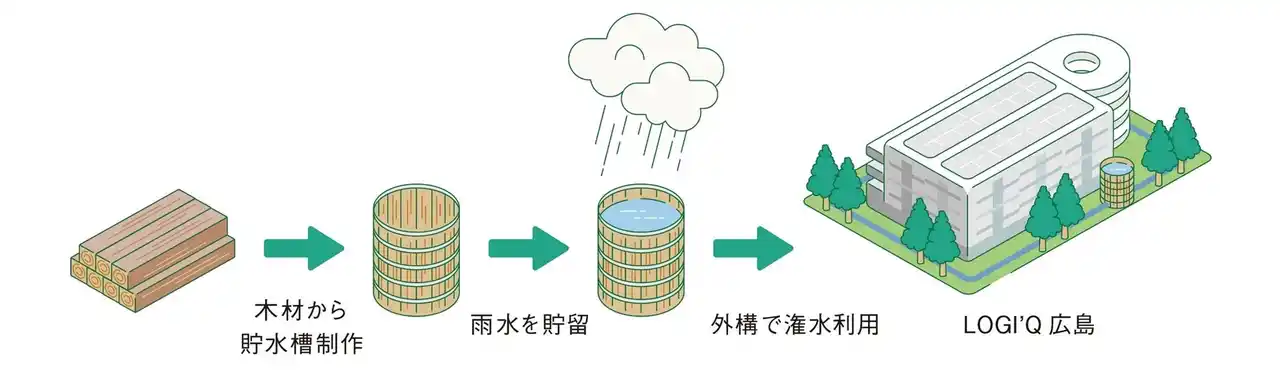 木槽を用いた雨水利用イメージ |