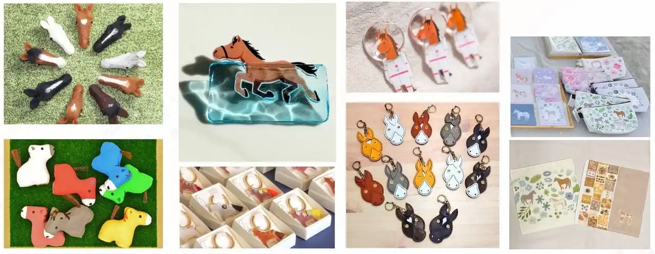 アクセサリー・雑貨・ファッション・ステーショナリーなど、かわいい馬のハンドメイド作品が並ぶ大人気のコーナー。ワークショップやオリジナルフード&スイーツの販売もあります。 作家とファンの交流の場にもなっています。 |