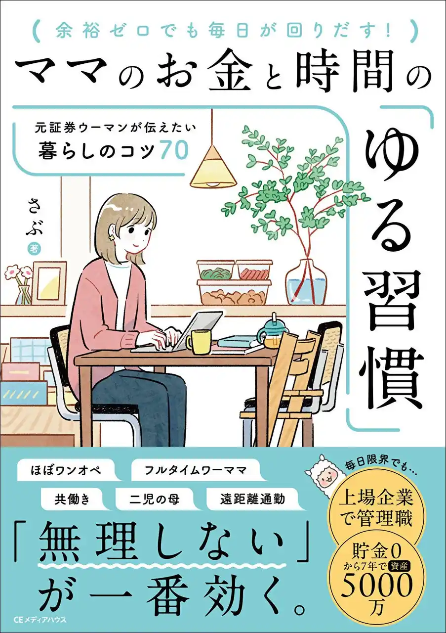 | 株式会社CEメディアハウスは、二人の子どもを育てながら、上場企業で管理職を務め、さらには20万人超の女性たちに支持されるインフルエンサー・さぶさんの、とにかく毎日限界でも生涯働き続けるノウハウをまとめた書籍『ママのお金と時間の「ゆる習慣」 元証券ウーマンが伝えたい暮らしのコツ70』を、2026年3月17日(火)に発売いたしました。 | |||||||||