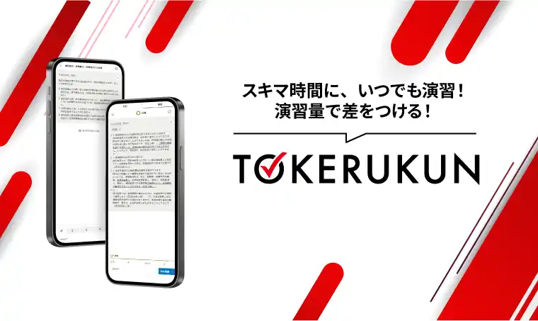 TOKERUKUNは各科目の肢別過去問集の問題を解くことができるオンライン問題演習サービスです。正誤だけでなく解説も確認することができるので移動時間なども有効活用していつでもアウトプット対策ができます。 |