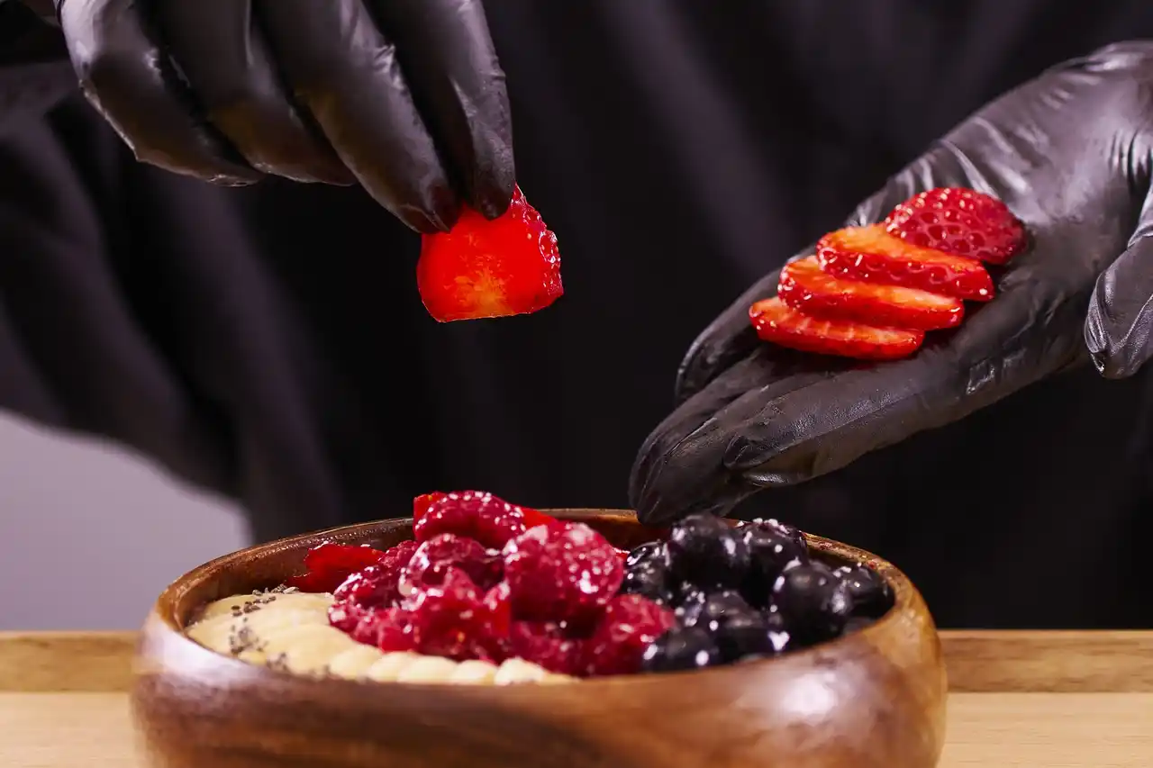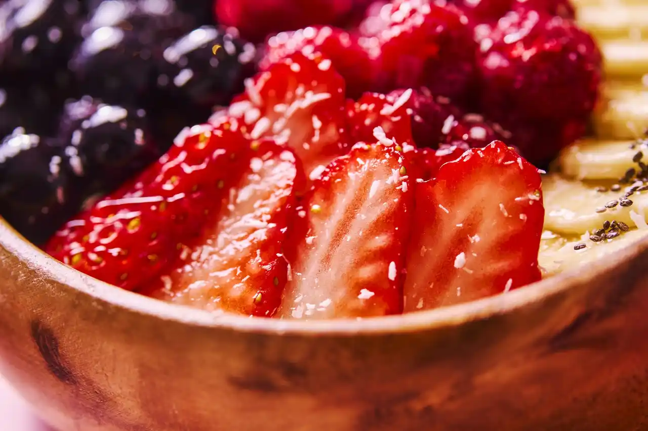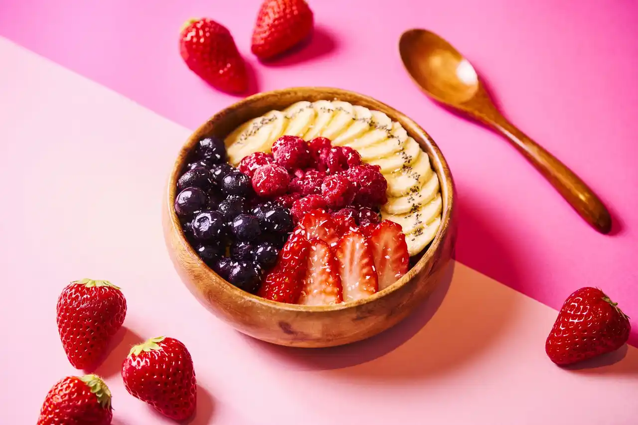 アサイーの爽やかな味わいに、いちご、ブルーベリー、ラズベリー、バナナをたっぷりとトッピングした贅沢な一品。彩り鮮やかなフルーツが、抗酸化作用を促します。ビタミンを豊富に含み、健康的で満足感のあるアサイーボウルです。 |