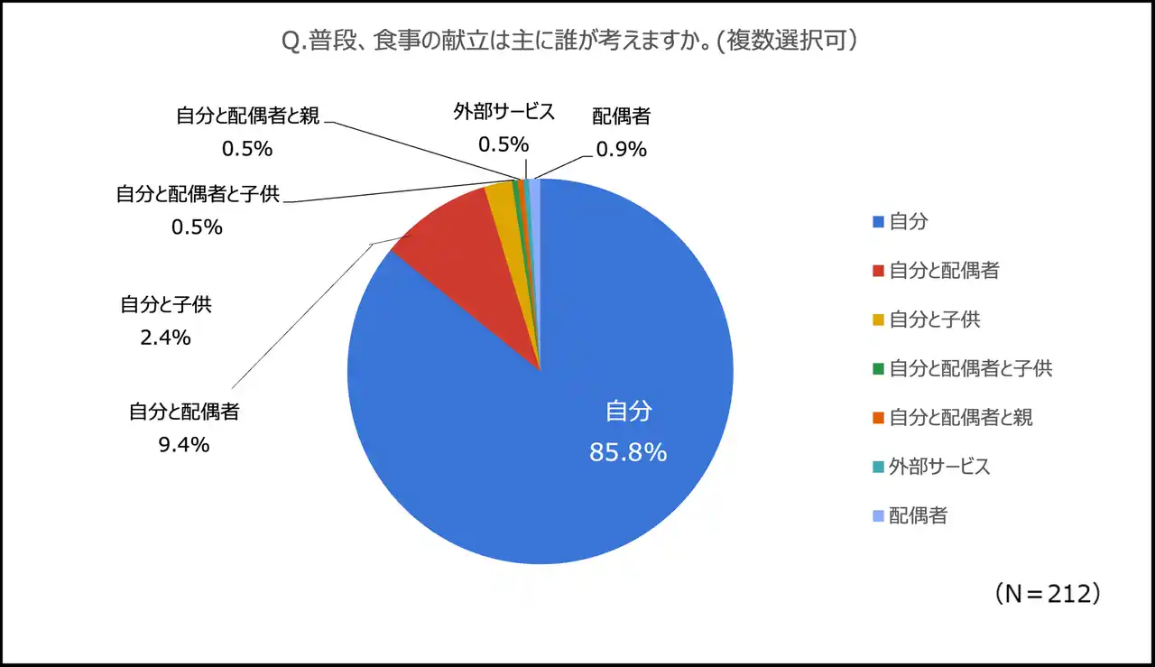 ・86%の女性がパートナーに不満を感じた経験あり。献立作りは、夫婦関係にも多少の影響を与える可能性も。 |