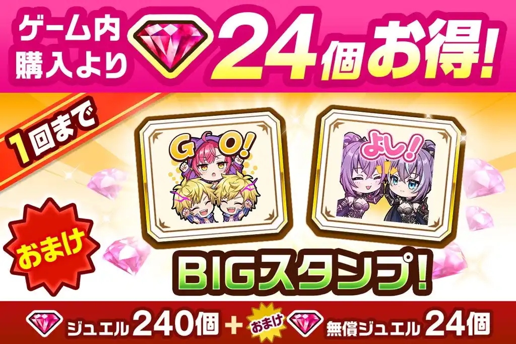 内容物:「ジュエル」240個、「無償ジュエル」24個、「BIGスタンプ」2個、「EXルーン」2個 |