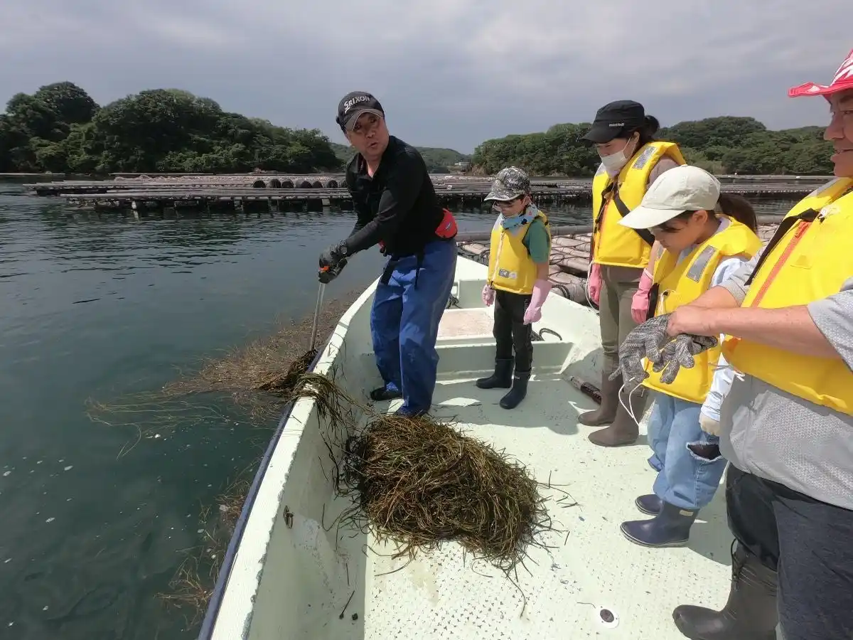 また、本海域は瀬戸内海国立公園に含まれ、環境省が整理する「生物多様性の観点から重要度の高い海域」にも該当します。岡山県の希少種であるスナメリが生息するほか、アマモ場が分布するなど、豊かな海洋生態系が残る海域です。瀬戸内海では干拓などの影響によりアマモ場の多くが失われてきましたが、邑久町漁協では漁業者を中心に2012年からアマモの保全・再生活動を継続しています。アマモは魚類の産卵場や稚魚の育成場として多様な海洋生物を育むとともに、有害藻類の増殖を抑制する働きがあり、牡蠣養殖の生育環境の維持にも寄与しています。 |
