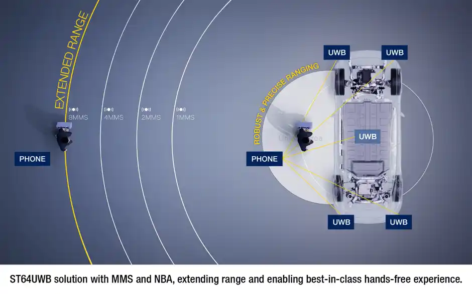 Forvia Hella社の自動車アクセスHW D&Dチーム責任者であるDaniel Siekmann氏は、次のようにコメントしています。「IEEE 802.15.4abは、デジタル・キー・システムの一部としての次世代キー・フォブ(クルマの電子キー)を実現する基盤になります。測距範囲は802.15.4zの8倍を超え、NLOS(見通し外)での接続性も大幅に向上するため、後ろポケットやバッグに入れたキー・フォブでも信頼性の高い通信が可能になります。また、802.15.4zとの後方互換性があるため、従来のHF/LF(高周波・低周波)キー・フォブを最新のUWBアーキテクチャに置き換える際に実用的な移行パスを設定できます。STの新たなST64UWBチップにより、この移行がさらに進むでしょう。」 |