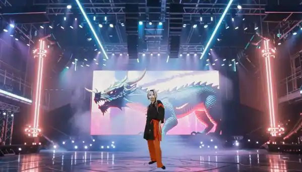 光と重低音に包まれた「現代の神降ろし」が始まり、巫女が現れ、完璧なダンスを披露する。龍との演舞が始まる。