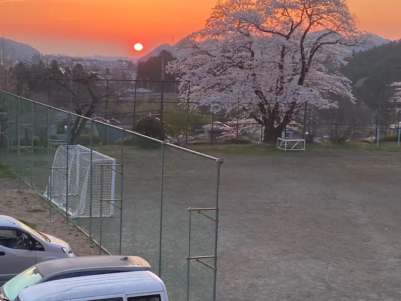 【桜咲く季節には正面から日の出がご覧できます】 |