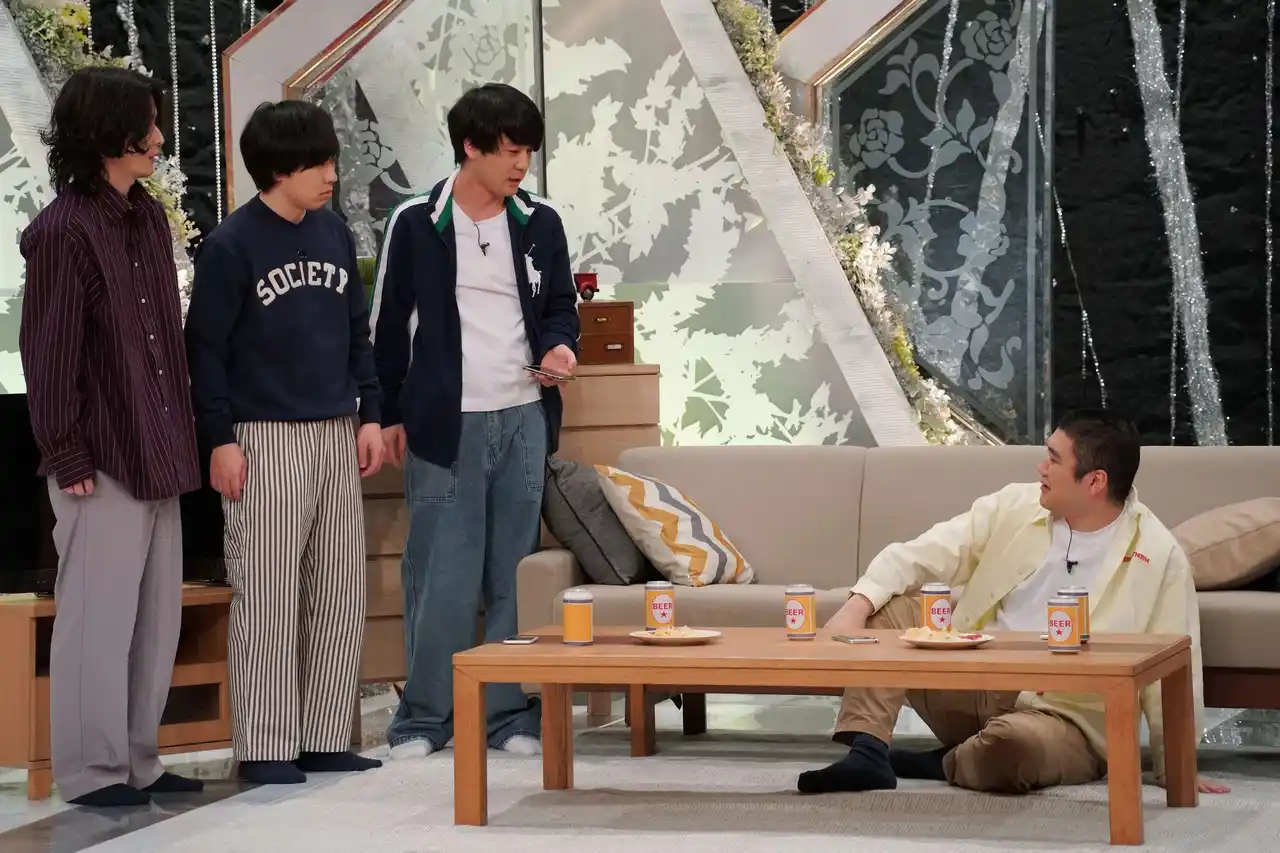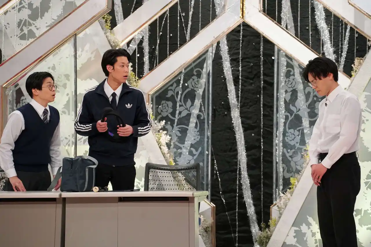 3月28日放送回で【母と息子】ネタに挑戦したのは、ななまがりとラブレターズ、そしてロングコートダディ。ななまがりのネタに本郷奏多は「斬新!頭を使わないで笑わせていただいた」と笑顔でコメント。続いて【親への挨拶】ネタを披露したのは、ニッチェとパーパー。「バランスがいいなと思って。いいネタ」と、アンタッチャブルの柴田英嗣はパーパーのコントに感心していた。最後にバカリズムが選曲したホイットニー・ヒューストンの名曲「I Will Always Love You」を使った【同じ音】ネタに挑戦したのは、ダウ90000と吉住。ダウ90000のコント台本に注目したバカリズムは「だいぶ丁寧な台本ですよ。むちゃくちゃわかる」と台本の書き方に共感する一幕も。 |