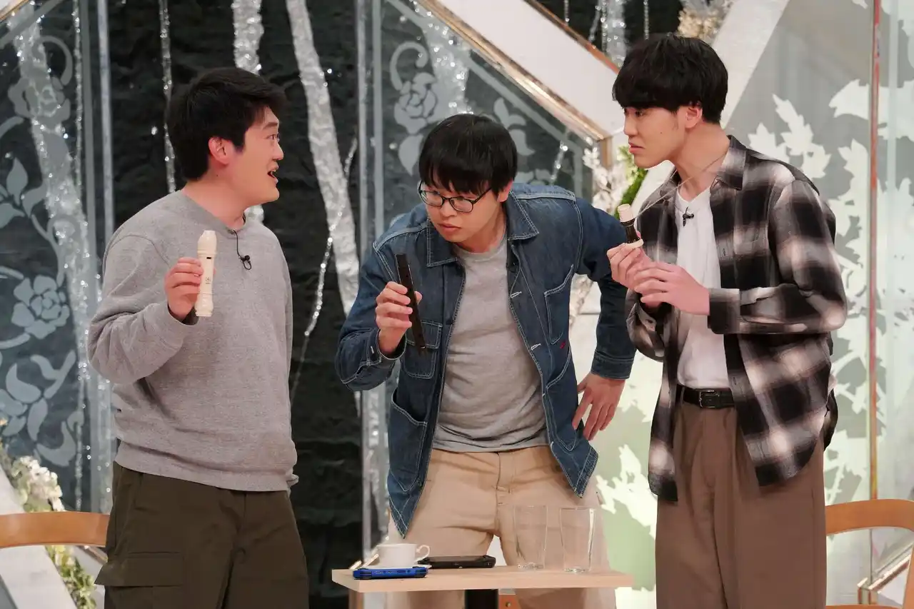 最後に前回放送のエンディングで池田美優(みちょぱ)がリクエストした「同じ小道具を使ったコント」を新たなお題として採用。バカリズムがセレクトした“黒帯”、“ポータブルゲーム機”、“アルトリコーダー”の3つの小道具を必ず使わなければならない【同じ小道具】ネタに、えびしゃと青色1号が挑戦。「ここまで完成度が高いと次回もやってほしい」と、笑顔のみちょぱだった。 |