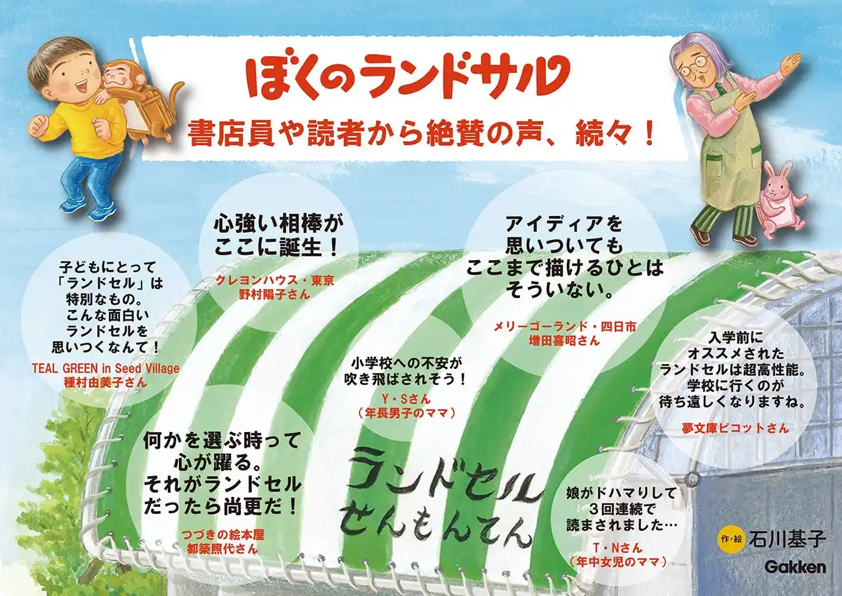| 『ぼくのランドサル』は、2026年3月5日より絶賛発売中。ランドセルを身近に感じている子どもたちも、ランドセルが懐かしい大人たちも、ともに笑って楽しめて、読み聞かせにもぴったりです。この春小学校に入学するお子さんへのプレゼントにもおすすめします。ご家庭で、保育園・幼稚園で、ぜひお子さんとお読みください。 | |||||||