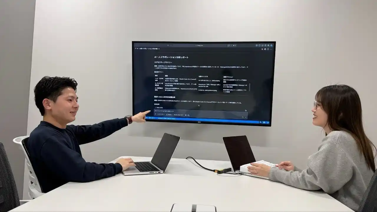 (画像:「Findy AI+」β版の「AI・人コラボレーション分析レポート」を活用する様子) |