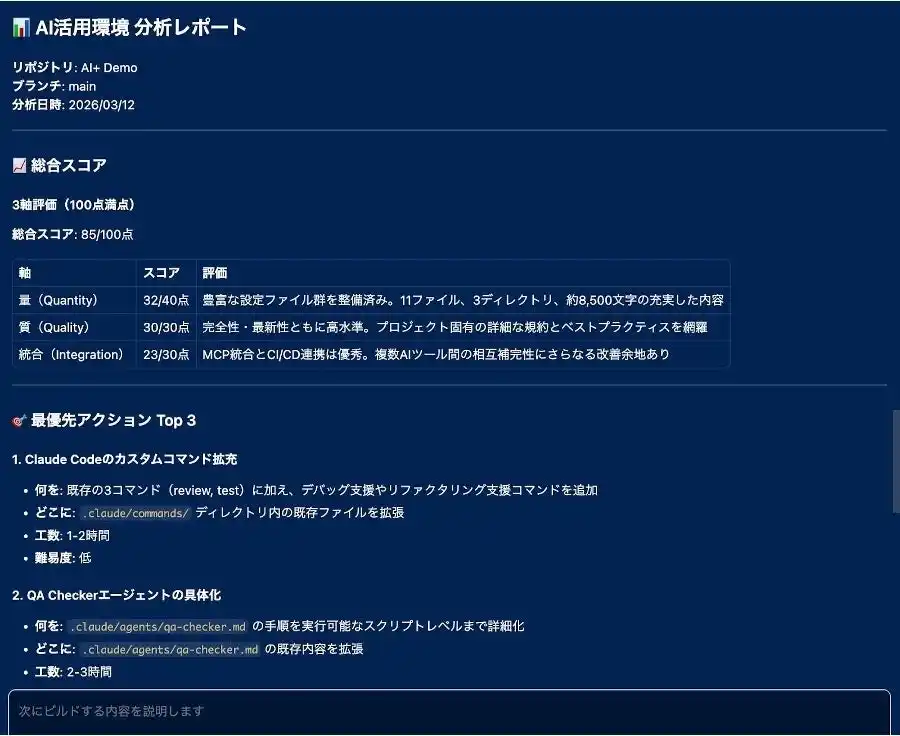 (画像:「Findy AI+」β版の「AI活用環境 分析レポート」機能) |