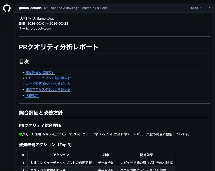 (画像:「Findy AI+」β版の「PRクオリティ分析レポート」機能) |