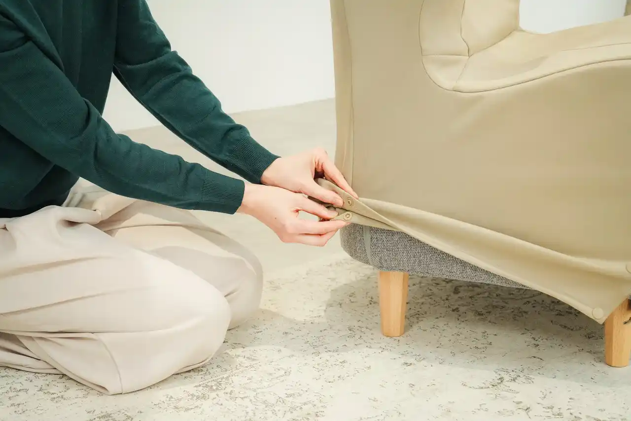 「Dr.CHAIR Plus」と「Style Chair DC」という異なる2つの椅子にフィットさせる為、ストレッチ生地を使用すると共に、スナップの留め方で変化できる形状にしております。また、カラーに関しては、インテリアへの馴染みを考え、「ブラック」「グレー」「ベージュ」の3色で展開いたします。 |