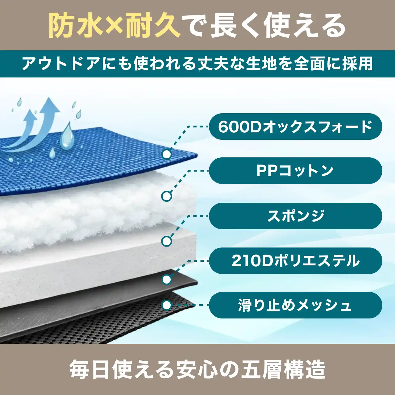 | 本製品は、防水性と耐久性に優れた600Dオックスフォード素材を採用し、泥汚れや抜け毛、飲みこぼし、濡れた荷物などから後部座席をしっかり保護します。さらに、メッシュ窓、安全ベルト、滑り止めマット、サイドファスナーなど、使いやすさと快適性に配慮した機能を備え、春のレジャーや日常使いに幅広く対応します。 | ||||||||||||||||||||||||||||||||||||