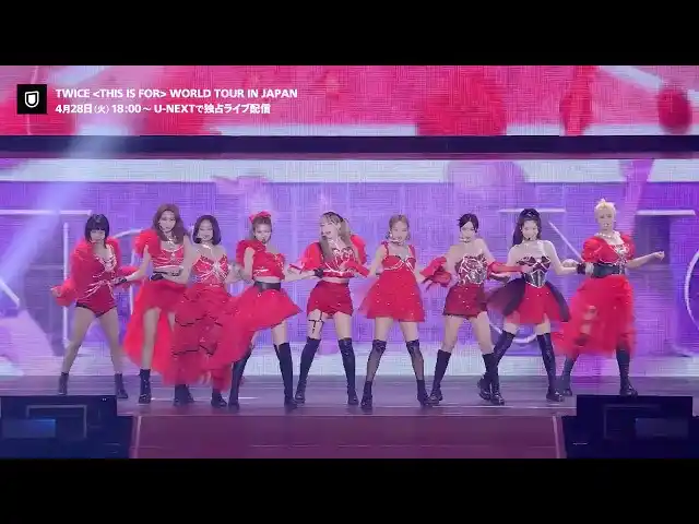 | この度U-NEXTでは、「TWICE <THIS IS FOR> WORLD TOUR IN JAPAN」より、4月28日(火)に開催される追加ファイナル公演の模様を独占ライブ配信することが決定いたしました。本公演は、様々な角度からTWICEのパフォーマンスを余すことなく楽しめる360度ステージ仕様。圧巻のステージを臨場感あふれる高音質・高画質な映像で、リアルタイム配信いたします。ぜひワールドツアーの集大成となるステージをU-NEXTでお楽しみください。 | |||||||||