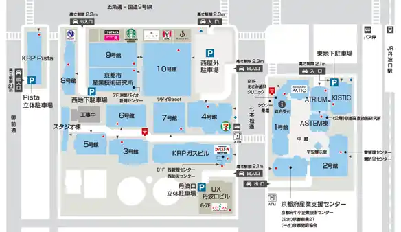 KRP地区は、約59,000平方メートル の敷地に18棟の建物が立ち並ぶ一大ビジネス拠点です。(以下マップ参照) ここには 510社6,000人が集い、新事業・研究開発に向けたさまざまな挑戦が日々行われています。 |