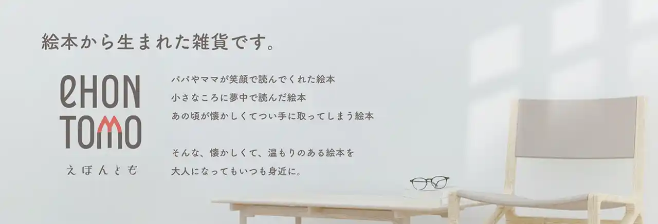 「eHONTOMO」は、“絵本と友だち”“絵本と共に生きていく”“絵本と共にプレゼント”をコンセプトに、絵本キャラクターをデザインしたアイテムを販売する、日販オリジナルブランドです。 |