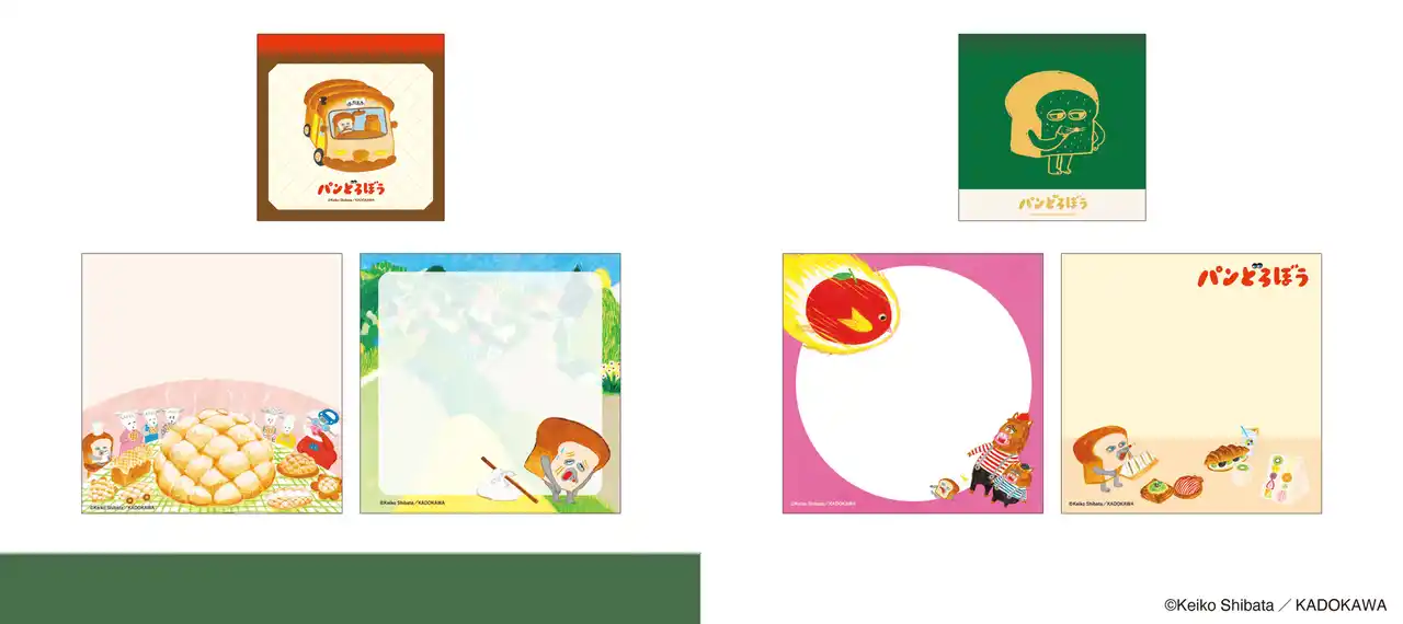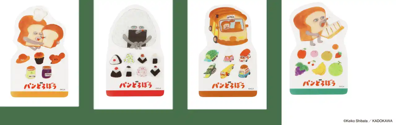 本商品は、大人気ユーモア絵本「パンどろぼう」シリーズのうち、『パンどろぼうとほっかほっカー』『パンどろぼうとりんごかめん』のイラストを中心にデザインしたステーショナリーシリーズです。スマホケースにも挟めるブックマーカーや、作品にちなんだワンポイントつきのブックカバーやペンケース、人気の高いボックスロールステッカーなど、全7種のアイテムをラインナップしました。「パンどろぼう」ならではの鮮やかな色調は活かしつつ、大人でも日常使いしやすい落ち着いたカラーリングに仕上げています。 |
