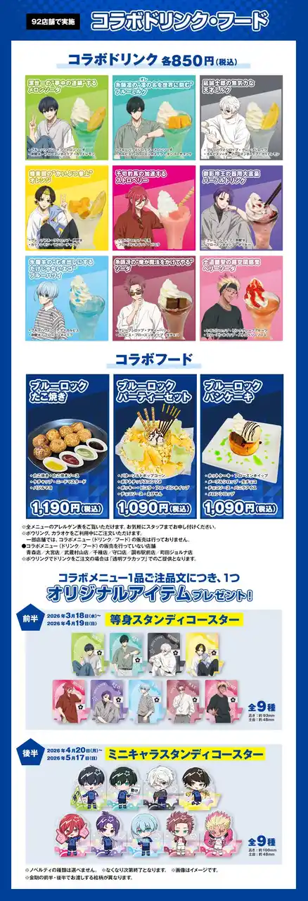 コラボメニューを1品ご注文につき、ランダムでオリジナルスタンディコースターを1枚プレゼント。 |