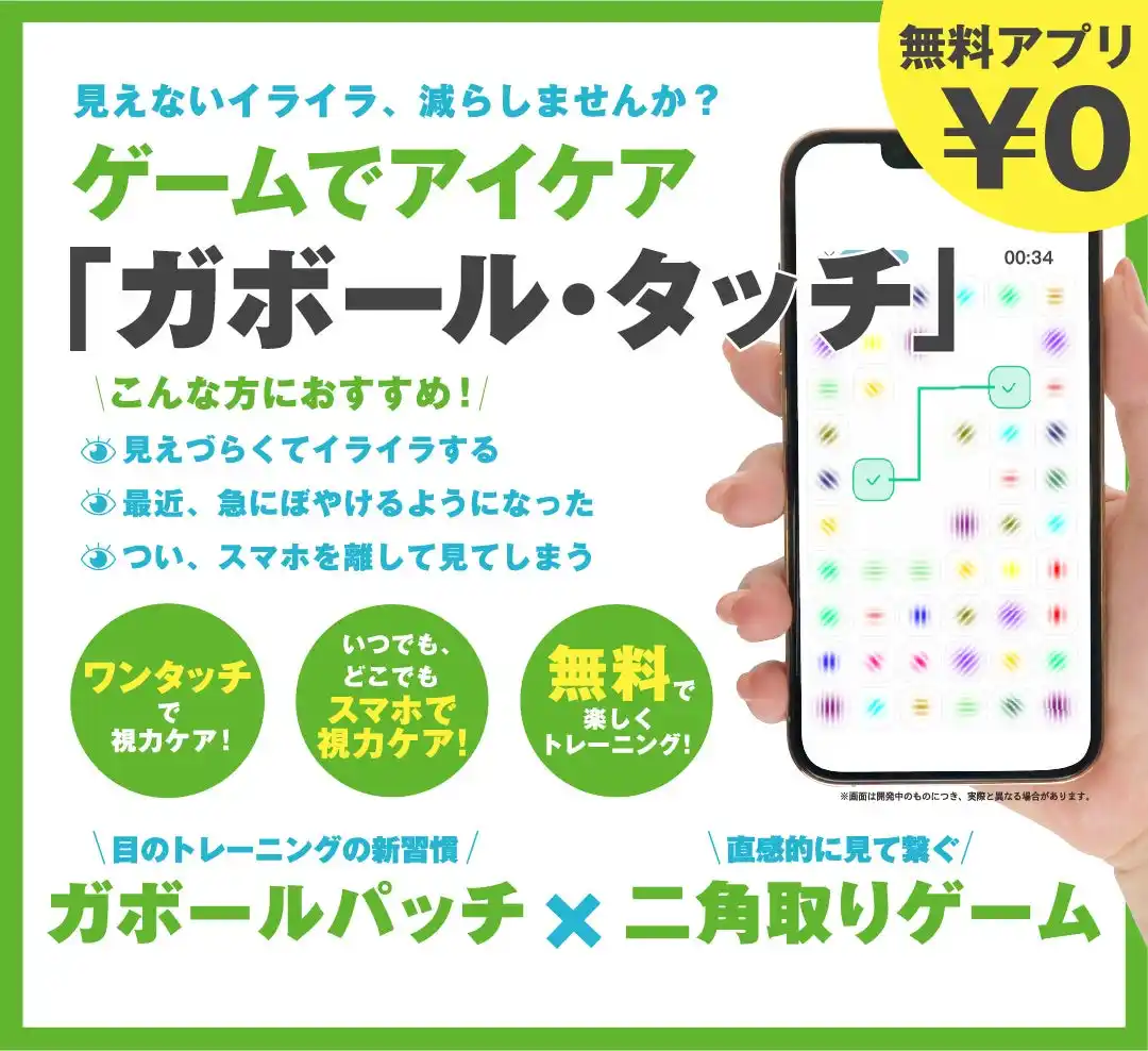だからこそ、私たちは皆さまの習慣化を一番近くで支えるパートナーでありたいと考え、新たに「ゲームでアイケア」アプリを開発いたしました。 |