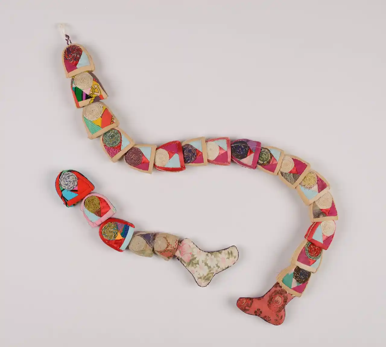 | 収集にとどまらず、自ら伝統手工芸を習得した鈴木千香枝氏による見事な再現作品も展示します。2014年に韓国の公募展で大賞(文化財庁長賞)を受賞した色彩豊かな「幾何学文様チョガッポ」「セクトン チョガッポ」や、繊細な結び飾りの「ノリゲ」など、卓越した手仕事の極致をご覧いただけます。 | ||||||||||||||||