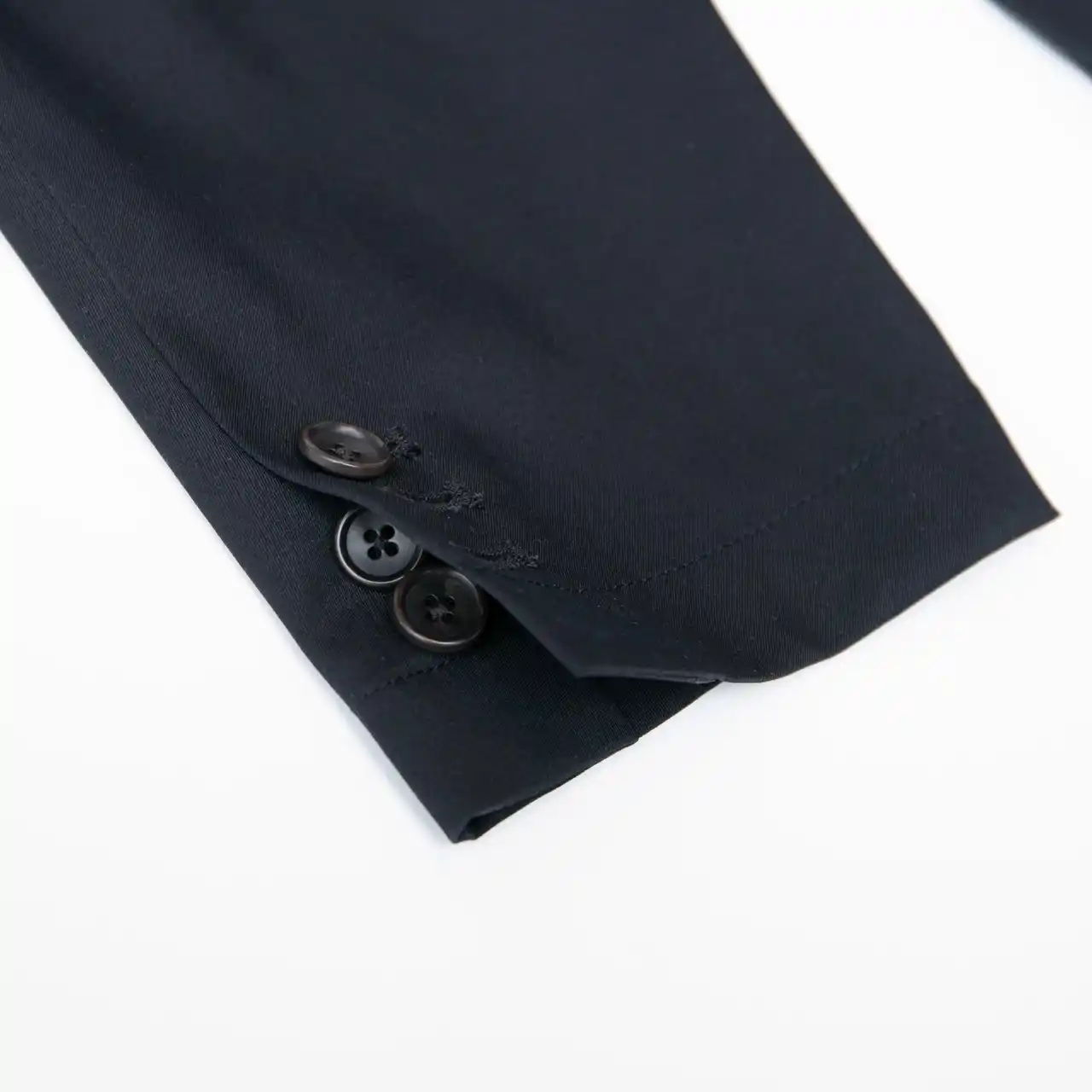 板書などで腕まくりがしやすいよう、袖口のボタンは本切羽仕様。深みのあるブラウンボタンがワンポイントアクセントに。 |