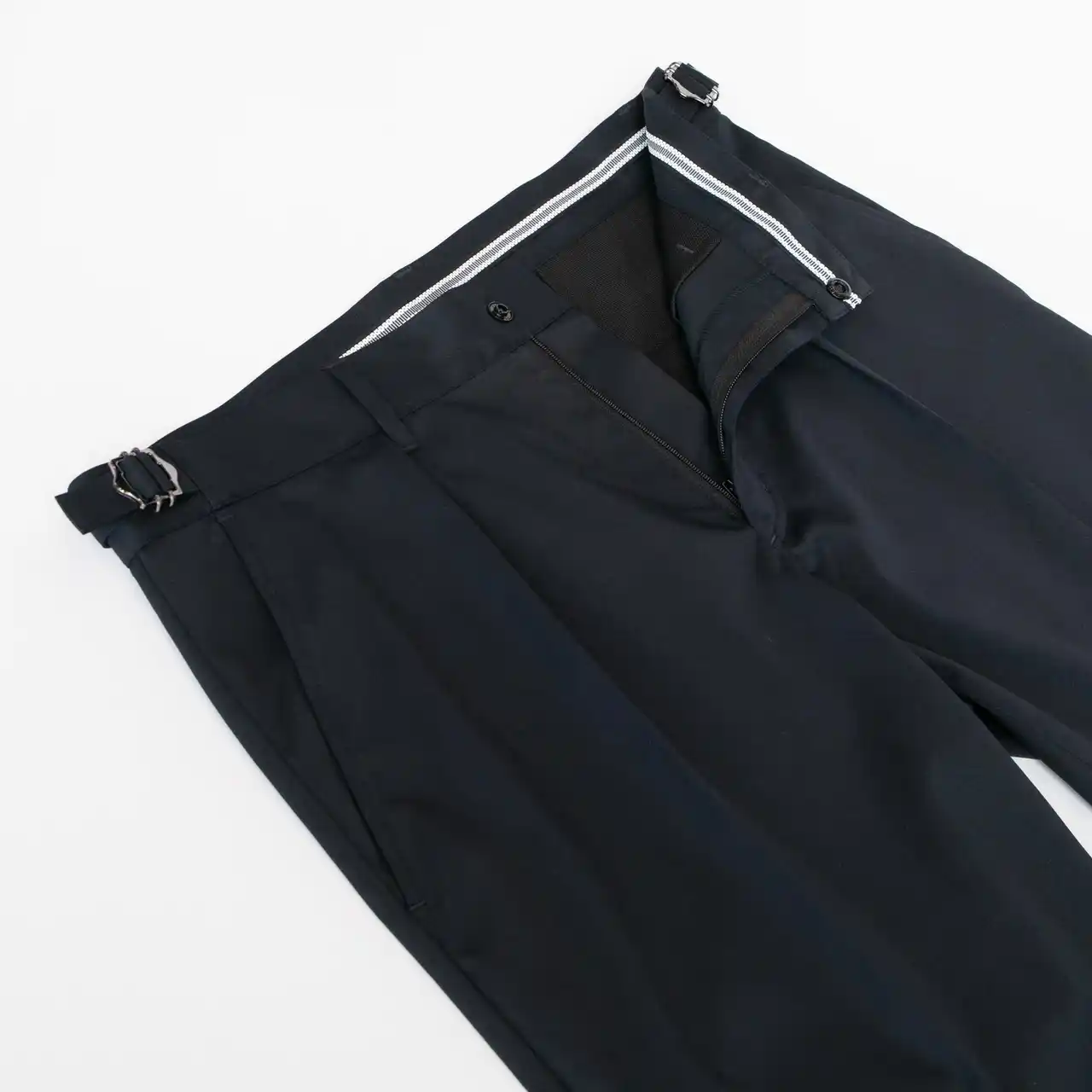 本モデル限定のアジャスターで腰回りのシルエットはスッキリ見せつつ、体型変化に合わせた調整を可能に。内側に滑り止めを付与し、シャツの裾が出てくるのを防ぎます。 |