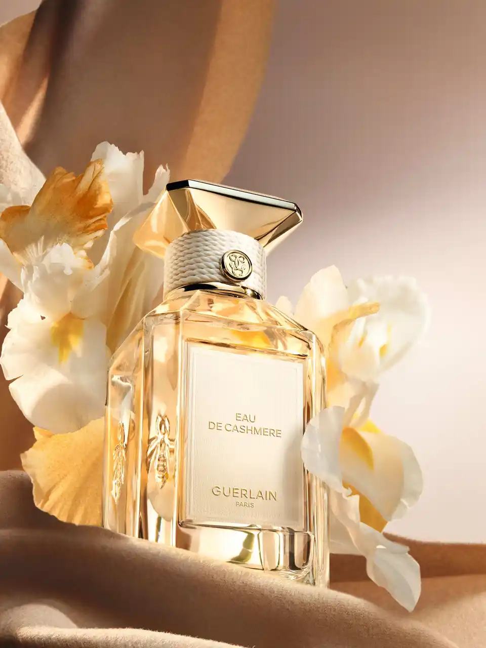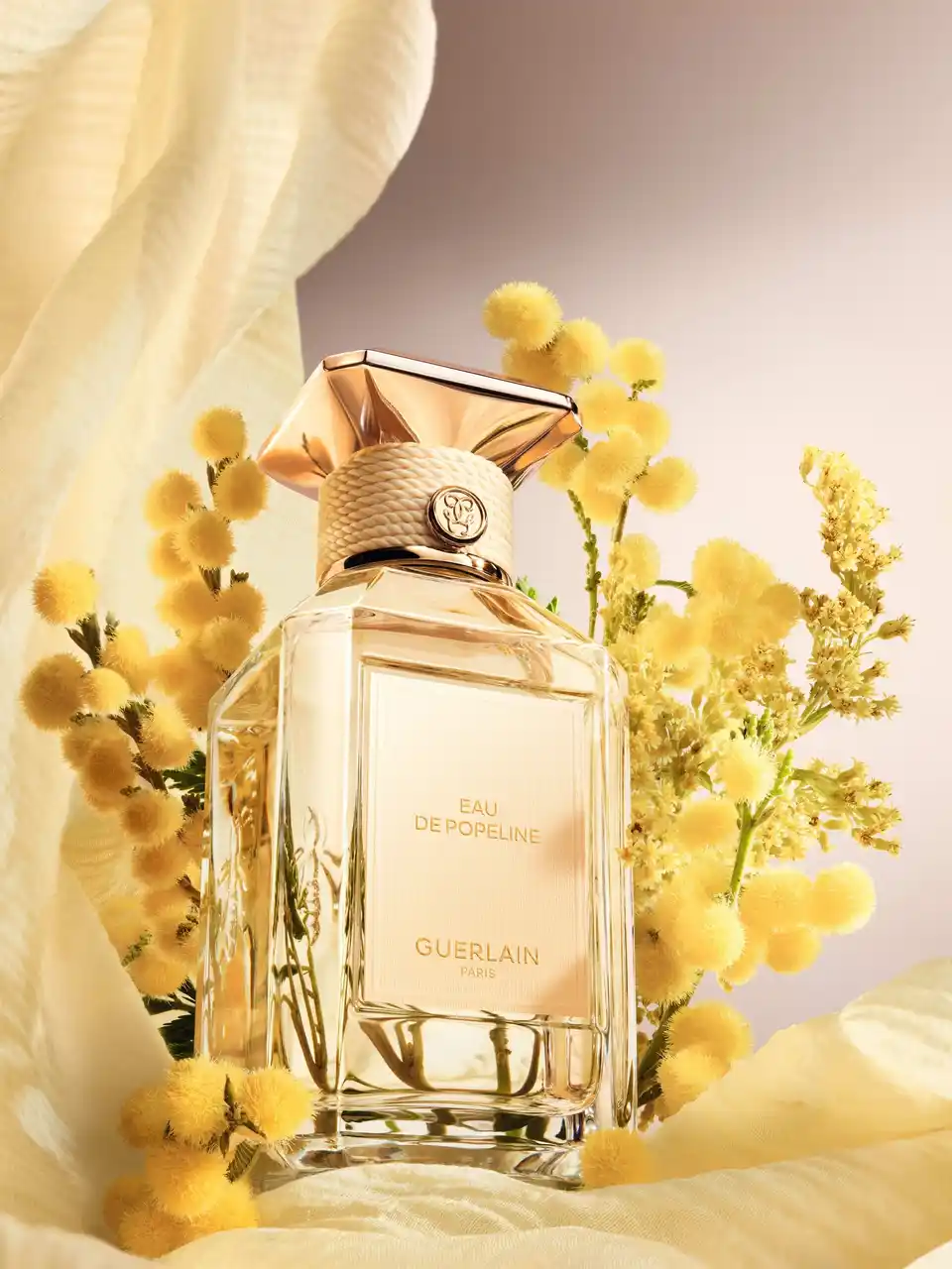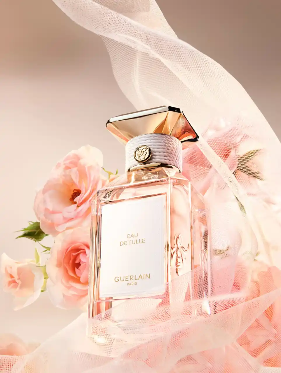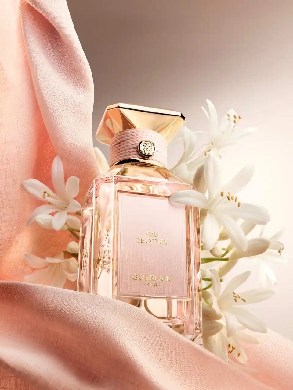 やわらかさと素材の対話をテーマとしたこのコレクションのために、ゲランは〈ラール エ ラ マティエール〉のアイコニックなボトルを再解釈しました。〈ラール エ ラ マティエール レ ゾー〉コレクションの各フレグランスには、それぞれの素材を象徴するパステルトーンのカラーが添えられています。カシミアラップのベージュ、ポプリンのイエロー、サテンパジャマのアーモンドグリーン、コットンキャンバスのピンク、花嫁のヴェールを思わせるピュアホワイト。テクスチャーのあるテキスタイル調のラベル、ネックを囲むコットンコード、そしてキャップを飾るセラミック調のフラットカラーが、それぞれの香りの色彩を際立たせます。 |