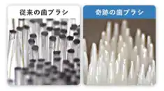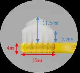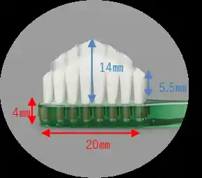 | 従来の均一な植毛ではなく、歯面と歯間を同時にケア。高さ1.9mmの段差設計。 | ||||||||||||||