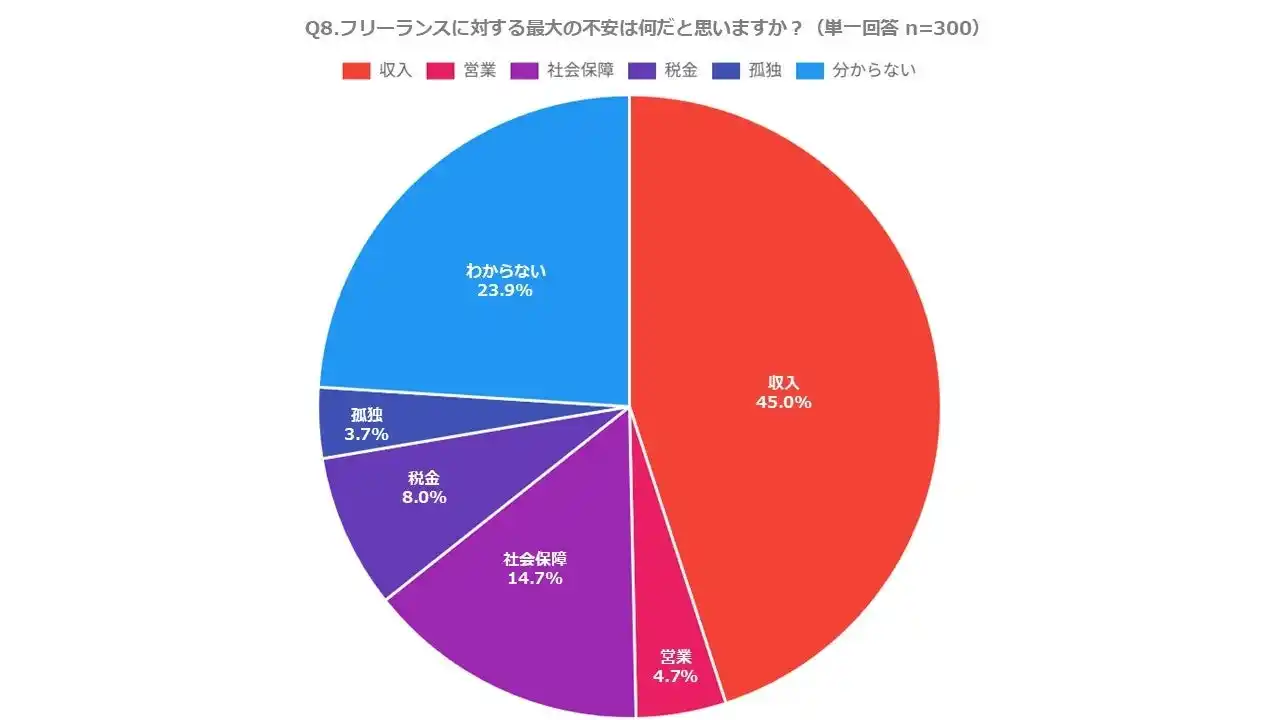 Q8.フリーランスに対する最大の不安は何だと思いますか?(単一回答 n=300) |