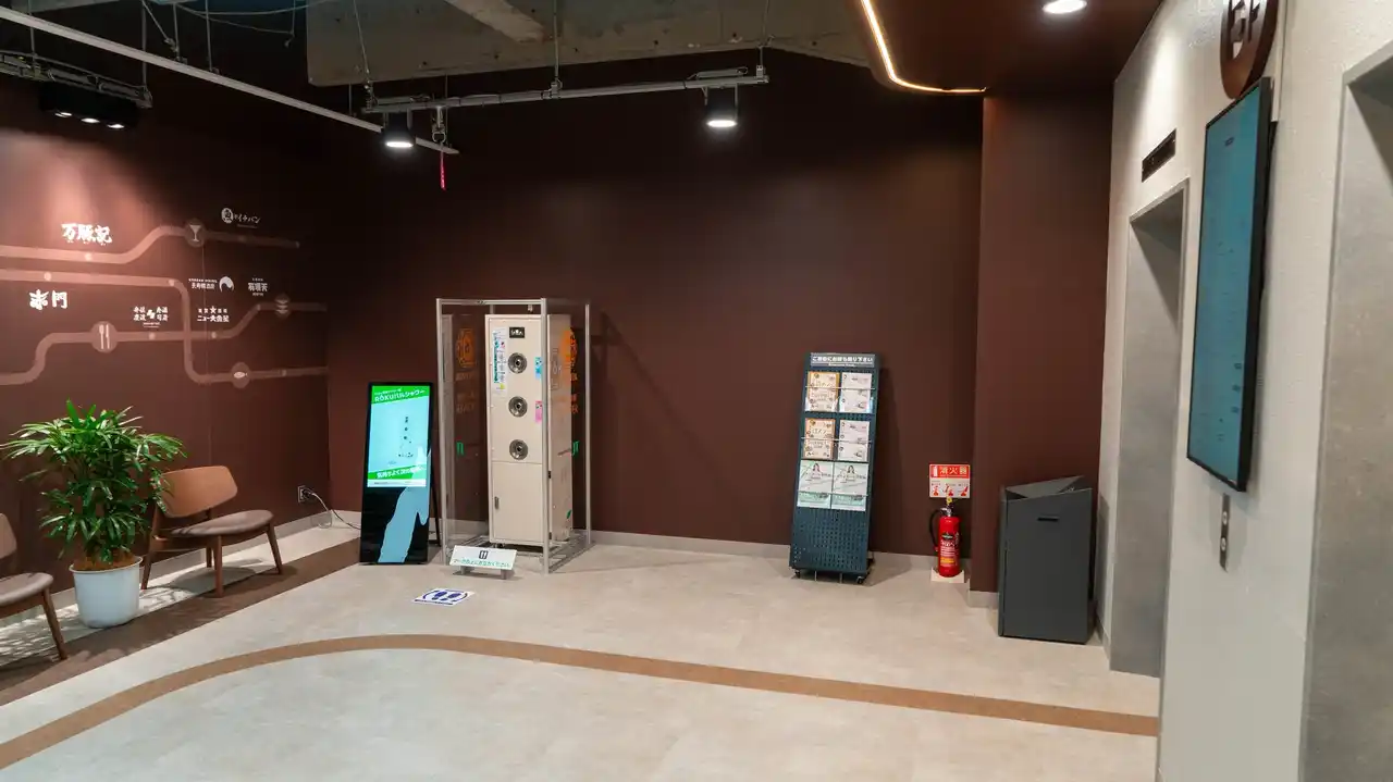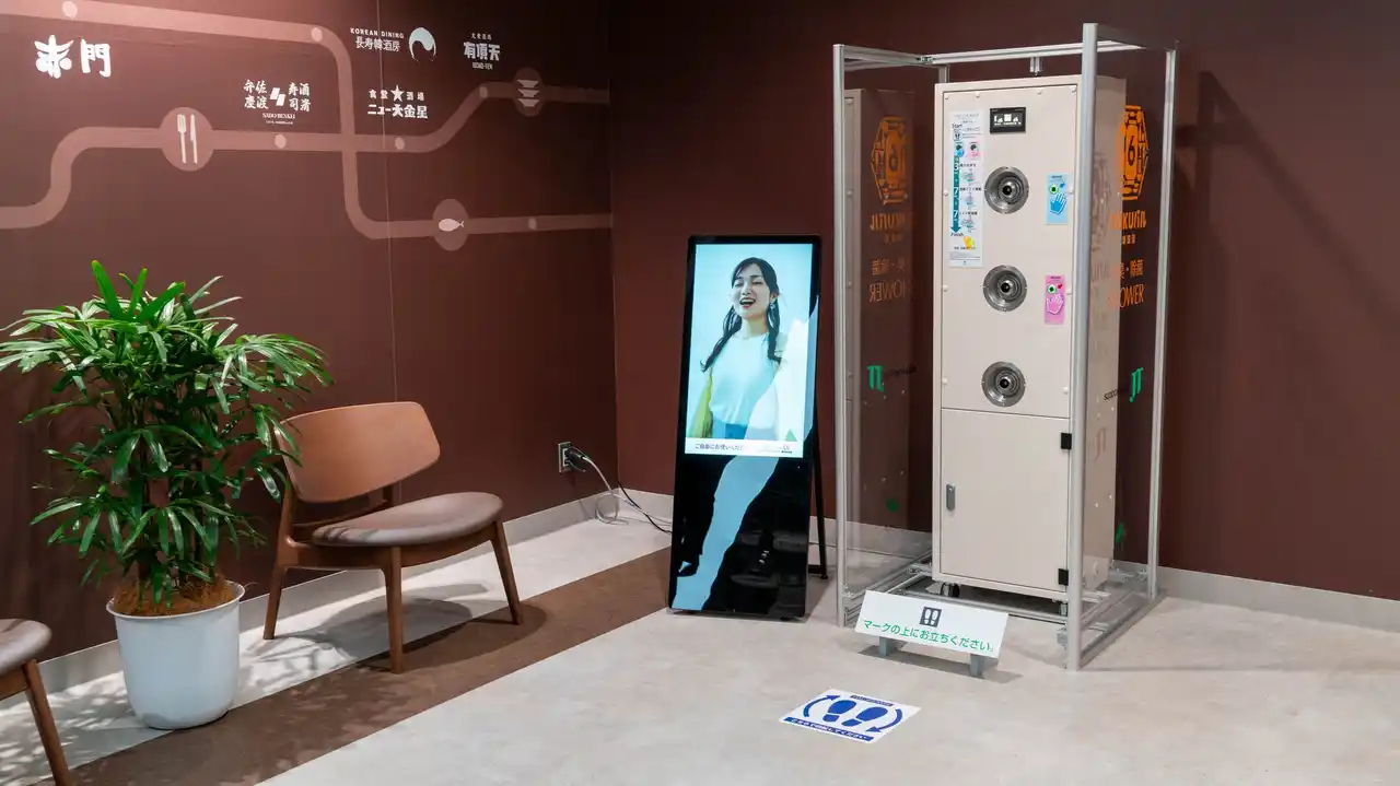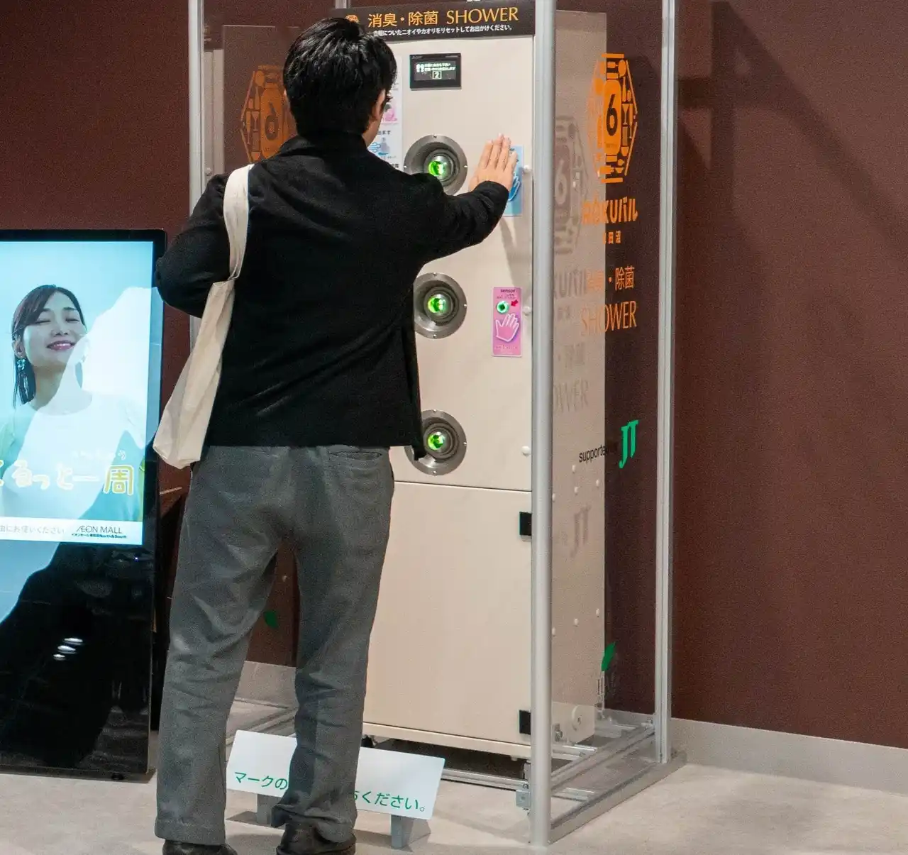 本装置は、フロア名称に合わせ施設内では「ROKUバルシャワー」として稼働。飲食後の衣類に付着した気になるニオイを、消臭ミストで素早くケアし、お食事後も快適なお時間を過ごせる環境を提供します。 |