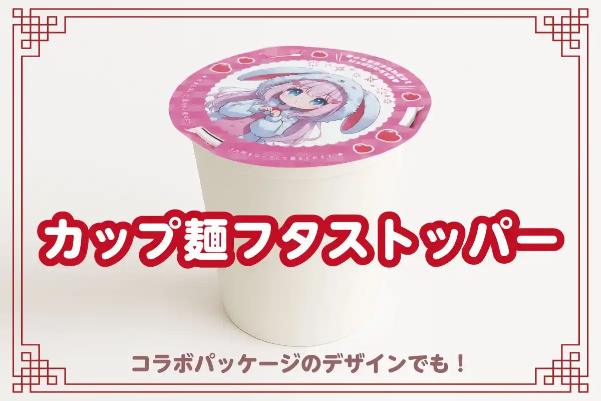 『カップ麺フタストッパー』は、お客様のイメージにあわせてオリジナルデザインで作製します。 |