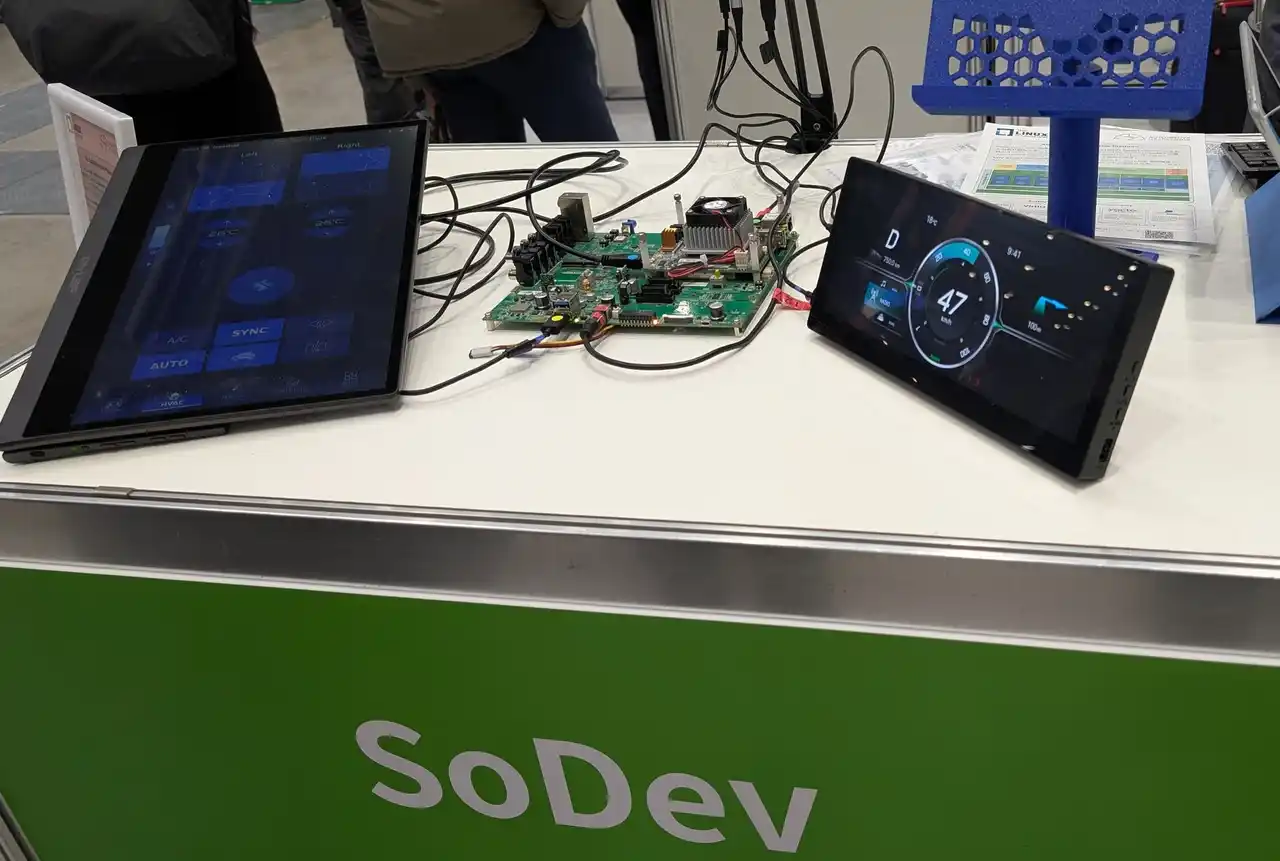AGLは2025年12月、ハードウェアの制約から切り離されたソフトウェア ファーストの開発を可能にする新しいオープンソースSDVリファレンス実装 SoDeV を発表しました。ECUの統合、仮想化を用いたハードウェア抽象化、次世代車両向けのクラウド連携をサポートします。 SoDeVは、 AGL Software Defined Vehicle (SDV) Expert Groupによる新たな取り組みです。 Linux Foundation/Automotive Grade Linux傘下の複数のオープンソースプロジェクトをもとに、SDVリファレンスプラットフォームをオープンソースソフトウェアとして提供します。 SoDeVは、2026年に仮想環境とAGLリファレンスハードウェアなどの車載SoC上での実現を目指しています。 今回の展示では、開発中のSoDeVや次世代SoCをベースにした最新技術を体験できる実機デモと、AGLベースで製品化されたシステムの実機デモを通じて、自動車業界に向けてAGLの開発成果をアピールしました。ソフトウェアをいかに迅速に移植・実装できるかを実機デモで実証し、自動車メーカーやサプライヤーに対してソフトウェアファーストの開発アプローチを訴求しました。さらに、Raspberry Pi、Rockchip、RISC-Vなど多様なSoC/ボードを用いたデモも展示し、AGLが幅広いSoCに適用可能であることをアピールしました。 |