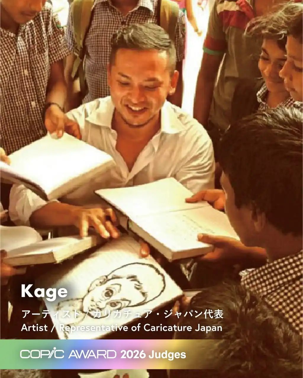 本場アメリカでカリカチュアを学んだ後、日本にカリカチュア文化を広めるべく起業。国際大会で多数の受賞歴を持ち、2016年の世界大会で殿堂入りを果たすなど、国内外で活躍している。 |