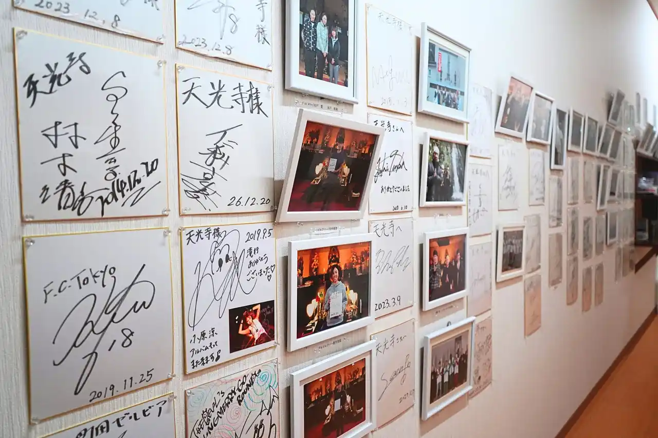 寺院内にはたくさんの著名人のサインが並ぶ場所も |