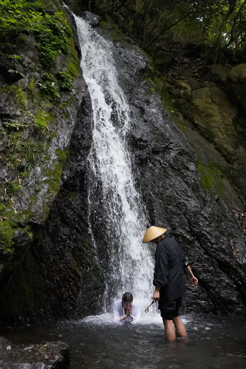 滝行(半日/1日): 山中の滝で真言を唱え、激しい水圧の中で無我の境地を目指します 。初心者や女性、お子様でも安心して参加できるよう、丁寧な作法指導を行っています。 |