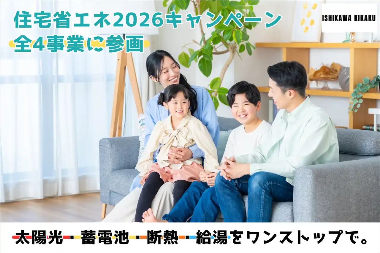 業界歴14年、8,000件の太陽光・蓄電池の設置を手掛ける石川企画合同会社(本社:茨城県常総市、代表:石川 聡)は、国土交通省・経済産業省・環境省の3省が連携して実施する「住宅省エネ2026キャンペーン」において、補助金申請を代行できる「住宅省エネ支援事業者」として前年に続き参画します。対象となる全4事業に対応しており、太陽光発電・蓄電池の導入に加え、断熱改修や高効率給湯設備の導入など、住まい全体の省エネ化を補助金活用とともにワンストップで支援します。