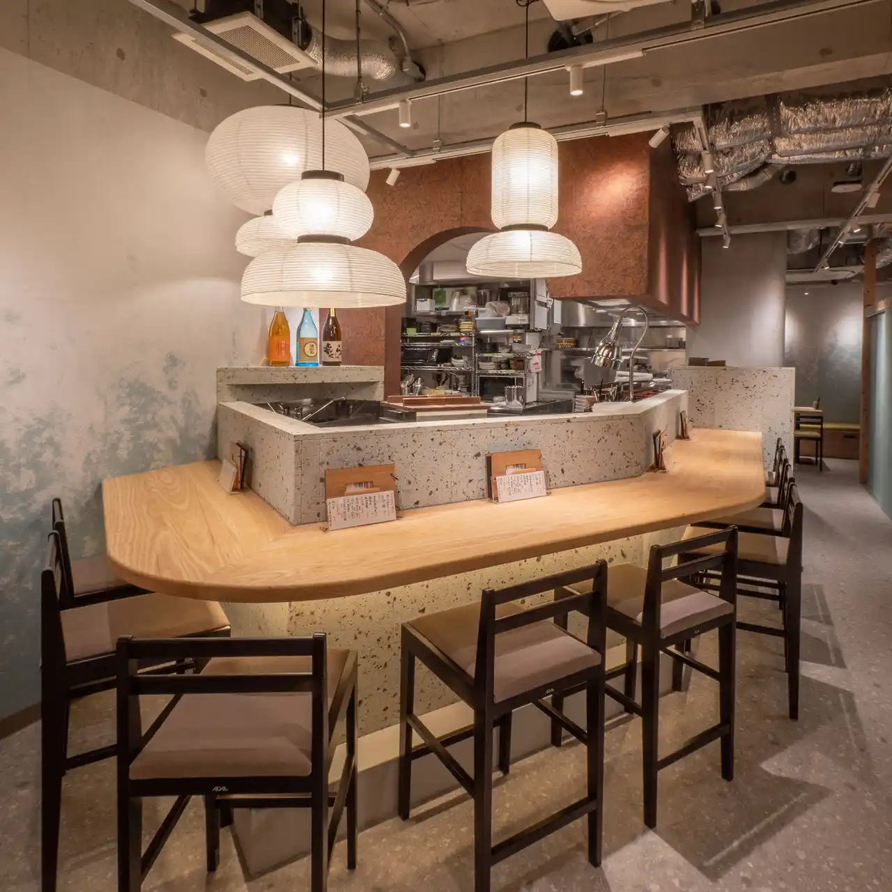 | モダンな店内は、円卓を囲むテーブル席、スタッフとの会話が楽しめるカウンター、4名掛けの半個室など、お一人様から会食やデート、女子会など人数やシーンに合わせて使い分けができるこだわりの空間が盛りだくさん。 | |||||||||||||||