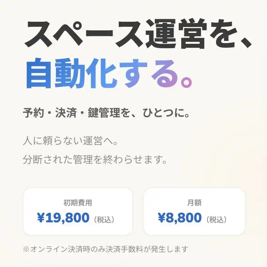 あらゆる“空間を貸すビジネス”が、よりシンプルに、より低コストで、より自由に運営できる社会へ。 |