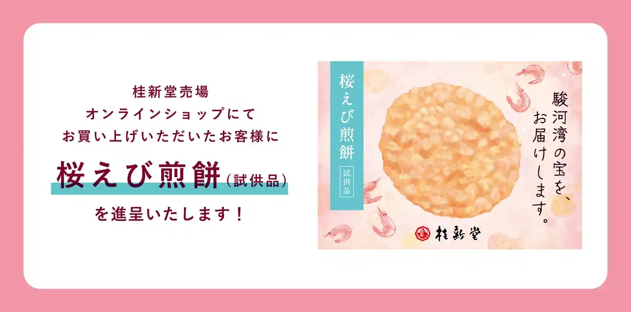桂新堂売場・オンラインショップにてお買い上げいただいたお客様に、「桜えび煎餅(試供品)」を進呈いたします。